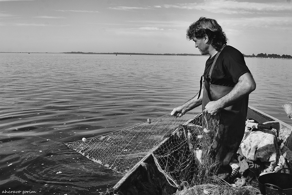 metro a metro, rede a rede, andar a andar, a rede vai-se acumulando junto à ré, entre o meio do barco e os pés do pescador.