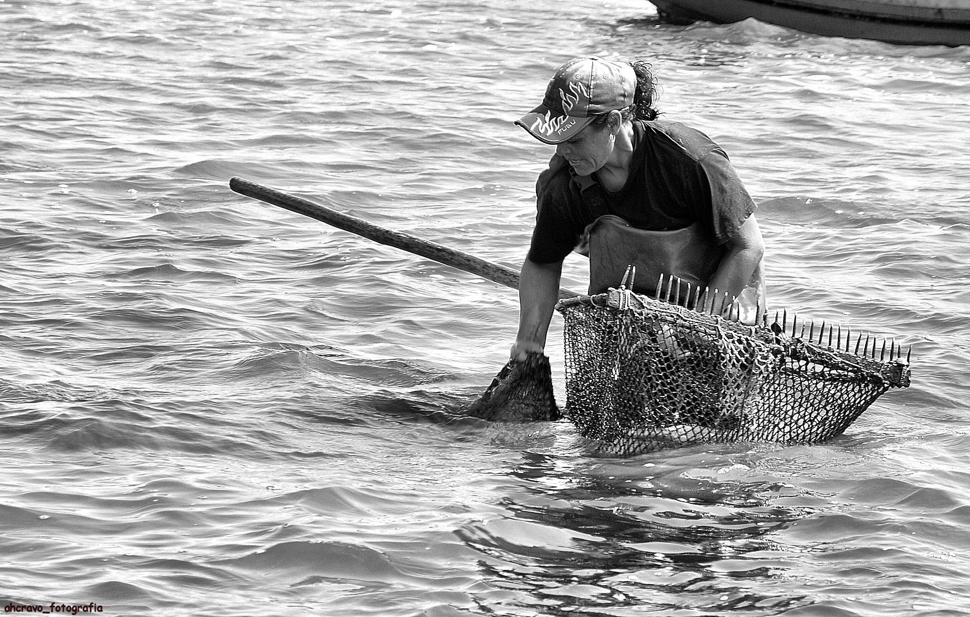 é uma arte mariscadora de arrasto pelo fundo que exige muita força de braço, jogo de cintura e muita resistência.