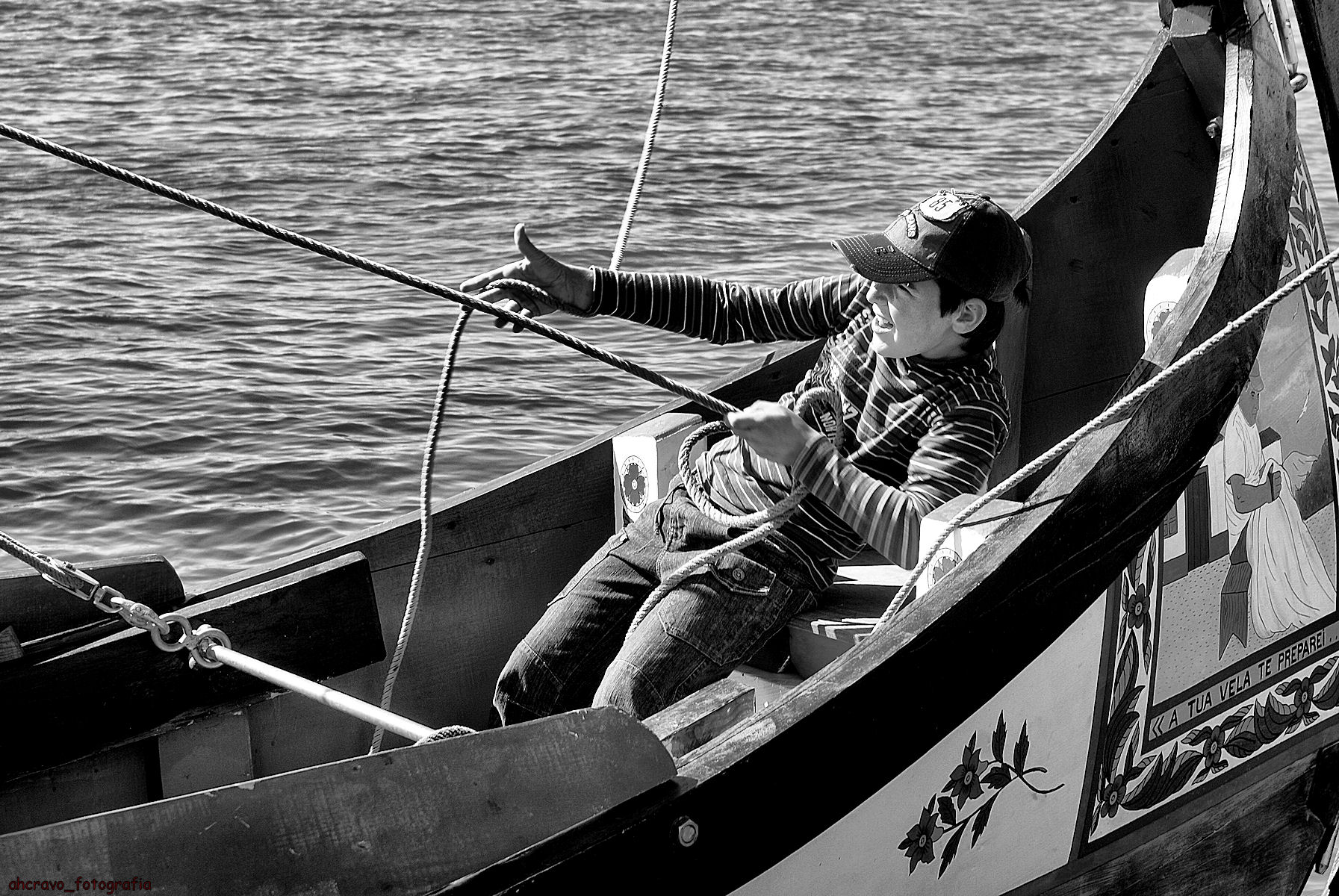 atento a toda as obras do avô, tem sempre um reparo a fazer, mas é a velejar e ao leme dos moliceiros que se sente bem.